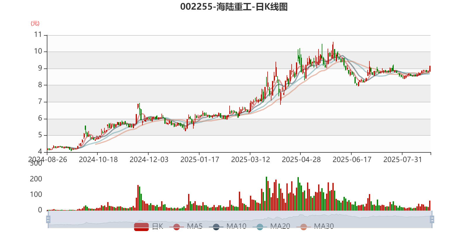 以8月25日收盘价计算,海陆重工目前市盈率(TTM)约为17.24倍,市净率(LF)约1.81倍,市销率(TTM)约2.85倍。