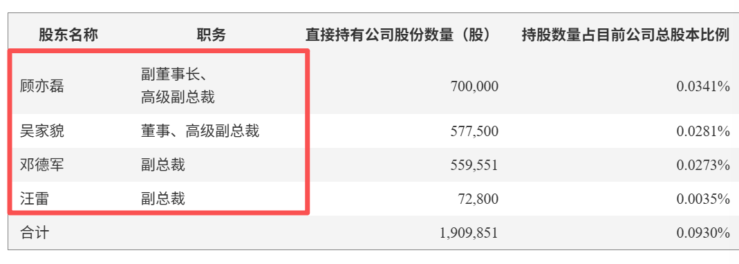 据最新公告信息,本次提前终止股份减持计划的原因是“避免短线交易”。这四位高管的职位均为副总裁级别以上,分别是副董事长、高级副总裁顾亦磊,董事、高级副总裁吴家貌,副总裁邓德军和副总裁汪雷。