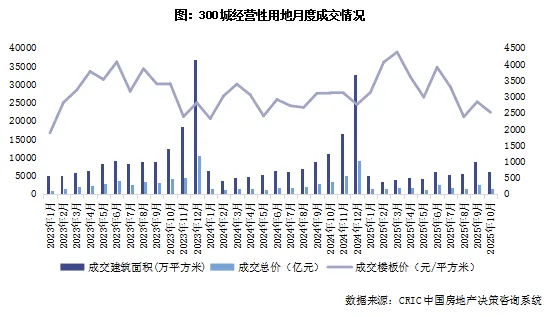克而瑞最新数据显示,2025年10月,全国经营性土地成交规模环比回落,当月建面与金额分别环比下降13%和20%,当月供应面积也环比微降1%。