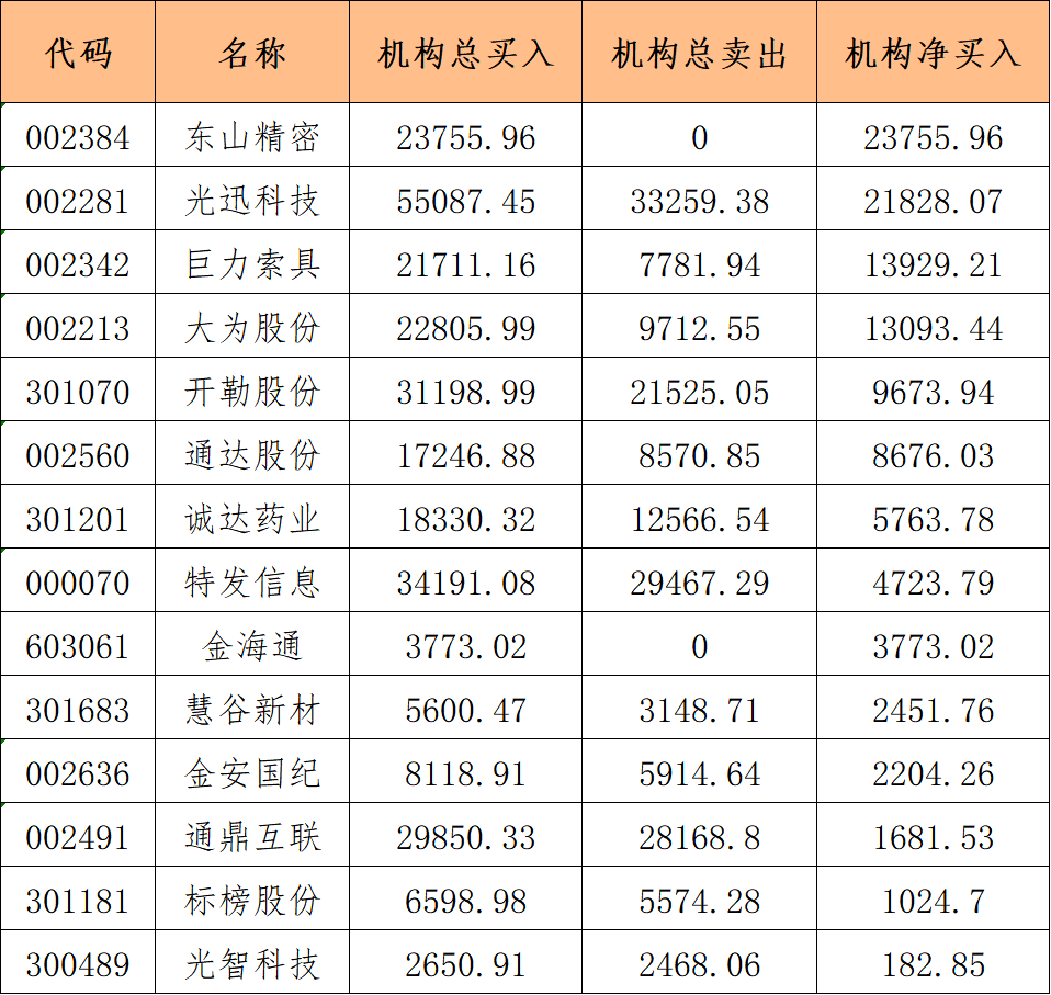 4月9日,机构资金呈现净买入的个股共计有14只(只统计当天买入情况,已剔除北交所、ST和连续三个交易日的统计数据)。与上一交易日相比,机构资金流入的个股数及流入规模均小幅增加,说明短期机构资金参与意愿小幅上升。